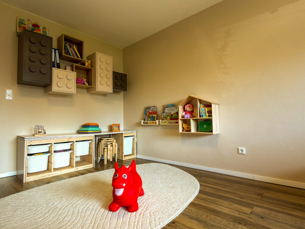 Die Nähe zum Wald verspricht tolle Ausflüge und viele Entdeckungsreisen, der Spielplatz in unmittelbarer Nähe ist immer für ein Abenteuer gut und der Garten: Viel Platz zum Toben für Kinder bis 6 Jahre.